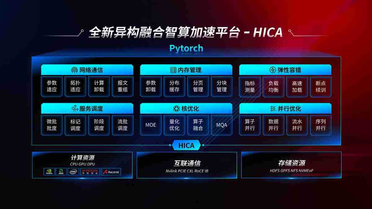 通过自研的服务层、、中间适配层、、、以及调度编排算法,,,,采用数据并行、、、、模型并行等多种并行方式,,,把并行计算任务进行有效的分解,,使其分别由相应的软件栈和算力资源来承接。。当GPU资源变化,,,HICA可以实时动态调度计算子任务并调整模型拓扑和架构,,以充分聚合各种算力资源。。。。